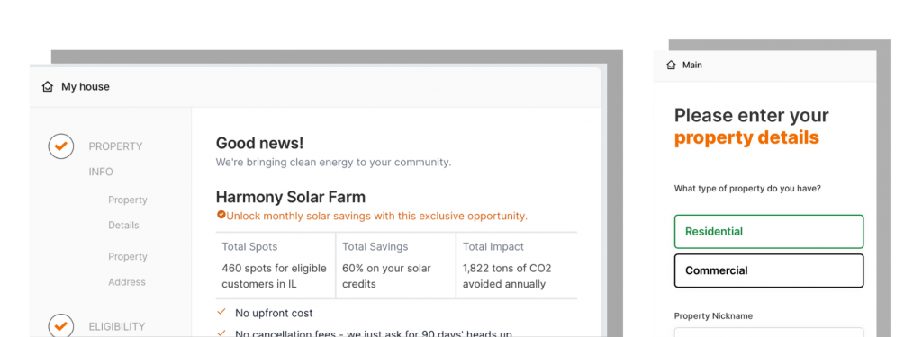 Flexible across community solar markets, our enrollment flow can be configured to suit every combination of project requirements.
