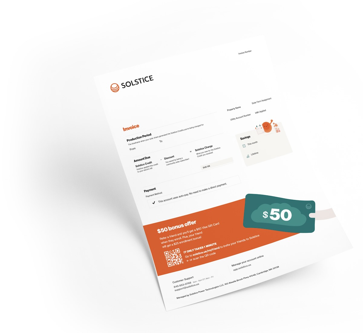 Help us make clean energy accessible in your area. Link your friends, family, and neighbors with Solstice community solar, and enjoy $100 for every friend who joins, with an extra $25 going their way!