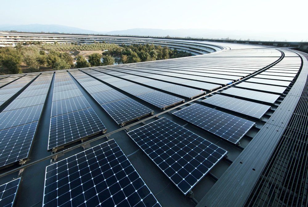 Apple’s new headquarters in Cupertino is powered by 100 percent renewable energy, in part from a 17-megawatt onsite rooftop solar installation.